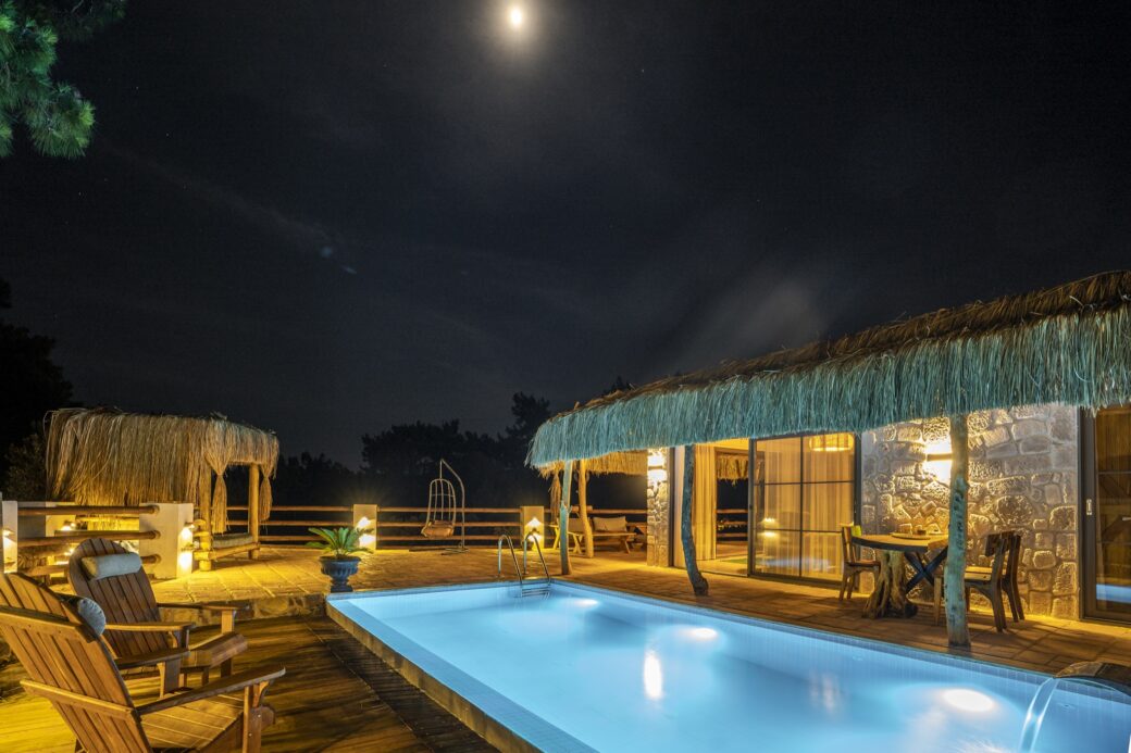 Villa Pine, vadinin görkemli yeşil ağaçlarına ve komşu dağ manzarasına bakan manzaralarıyla Akyaka’nın tepeleri arasında bir noktada yer almaktadır. Bu tek yatak odalı villa, kendi dış kapınızdan girdiğiniz andan itibaren özel bir sığınak yaratan, dış dünyadan tamamen tenha edilmiş mükemmel bir cennettir. Dışarıda, yer alan tam korunaklı geniş yüzme havuzu, güneşin keyfini çıkarabileceğiniz şezlonglar ve hamakla tam bir huzur ve rahatlama alanı yaratır. Havuz kenarında bulunan gölgeli açık hava yemek alanı, güneşten biraz gölge bulmak ya da akşamları dışarıda yemek yemek için mükemmeldir. İçerde, villanın rustik estetiği onu çevreleyen doğal peyzajın canlılığını yakalar; Çıplak ahşap kirişler ve ağaç heykelleri dışarının havasının içeriye yansıması gibidir. Yaşam alanında, akşamları rahatlamak için bir kanepe ve düz ekran TV bulunur. Modern olanaklarla dolu villa Forest, tam donanımlı bir mutfağı ile size evinizin keyfini yaşatacaktır. Evde doğal ışığın devamlılığını sağlayan, tavandan tabana cam pencerelere sahip bir yatak odası bulunmaktadır.